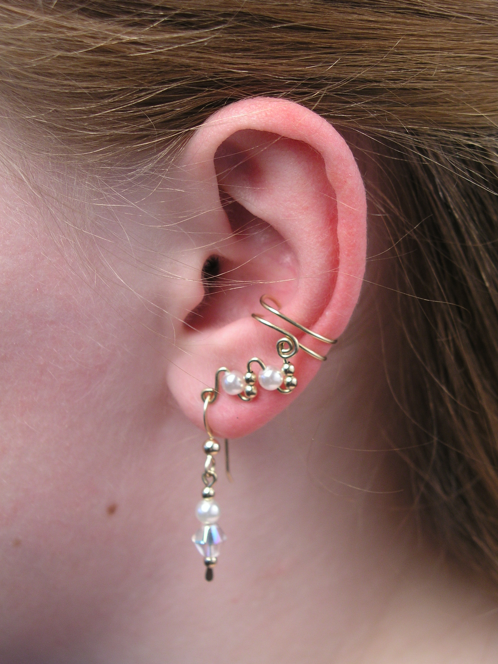 Handcrafted in the USA, these gold fill half length ear cuffs are featured with matching drop earrings. Made with the highest quality Austrian faux pearls. This product comes as a 4 piece set (2 Half Cuffs and a pair of Earrings). The ear cuffs are lovely worn as a pair or individually. Other items featured in our store offer opportunities to purchase the jewelry one piece or one pair at a time. We invite you to keep shopping throughout our store.